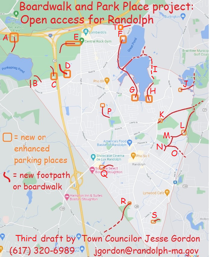 a lot of "No Dumping" signs. The Randolph Master Plan recommends pedestrian-accessible