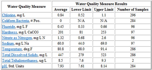 One of Tucson’s water quality charts from their public website. You can get these figures for every neighborhood, and for every individual sensor, every day or summarized by month or year. These are the SAME data points that go into Randolph’s annual report – we should make them more readily available!
