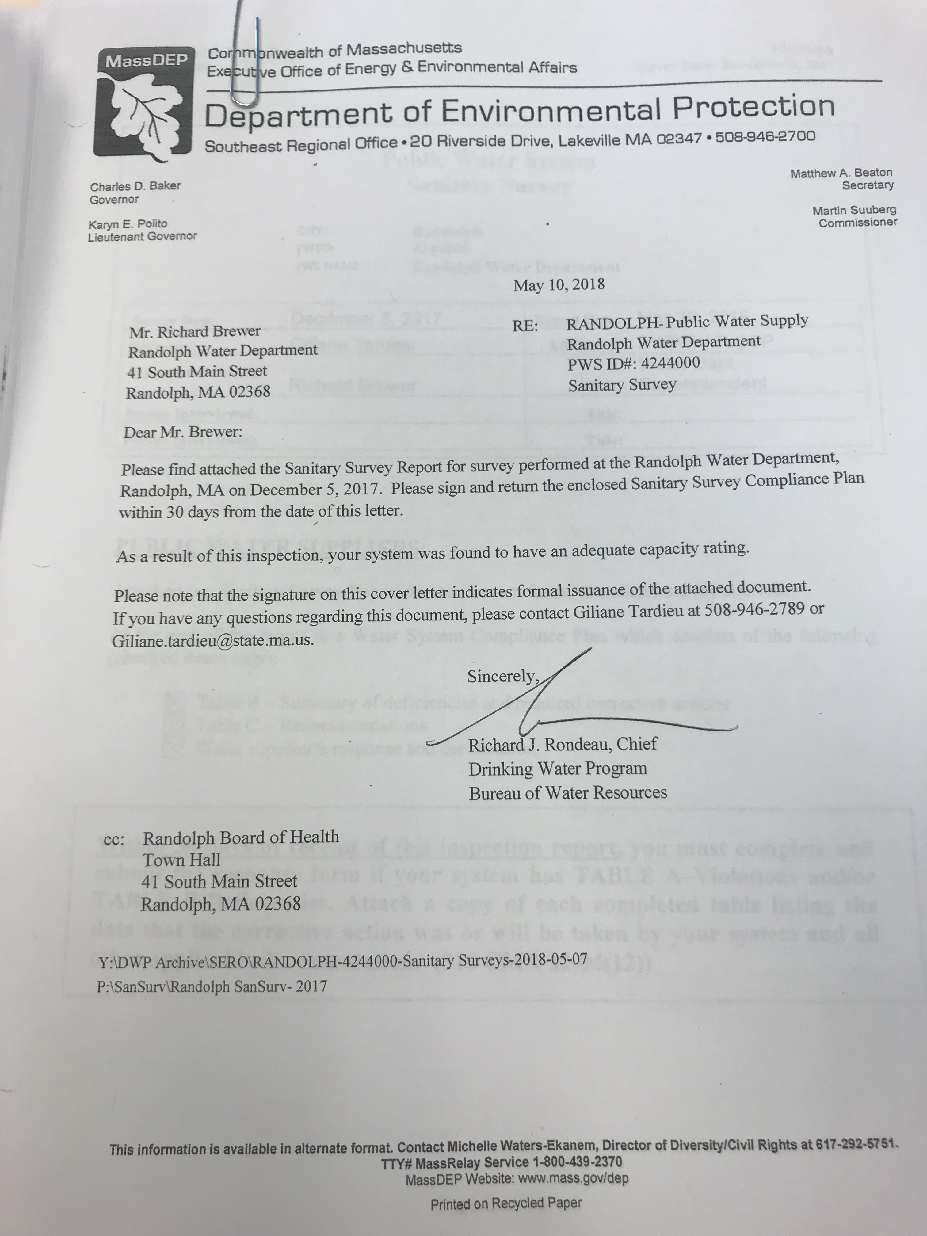 | Document 2128 | Summary report from MA DEP to DPW Director Richard Brewer |