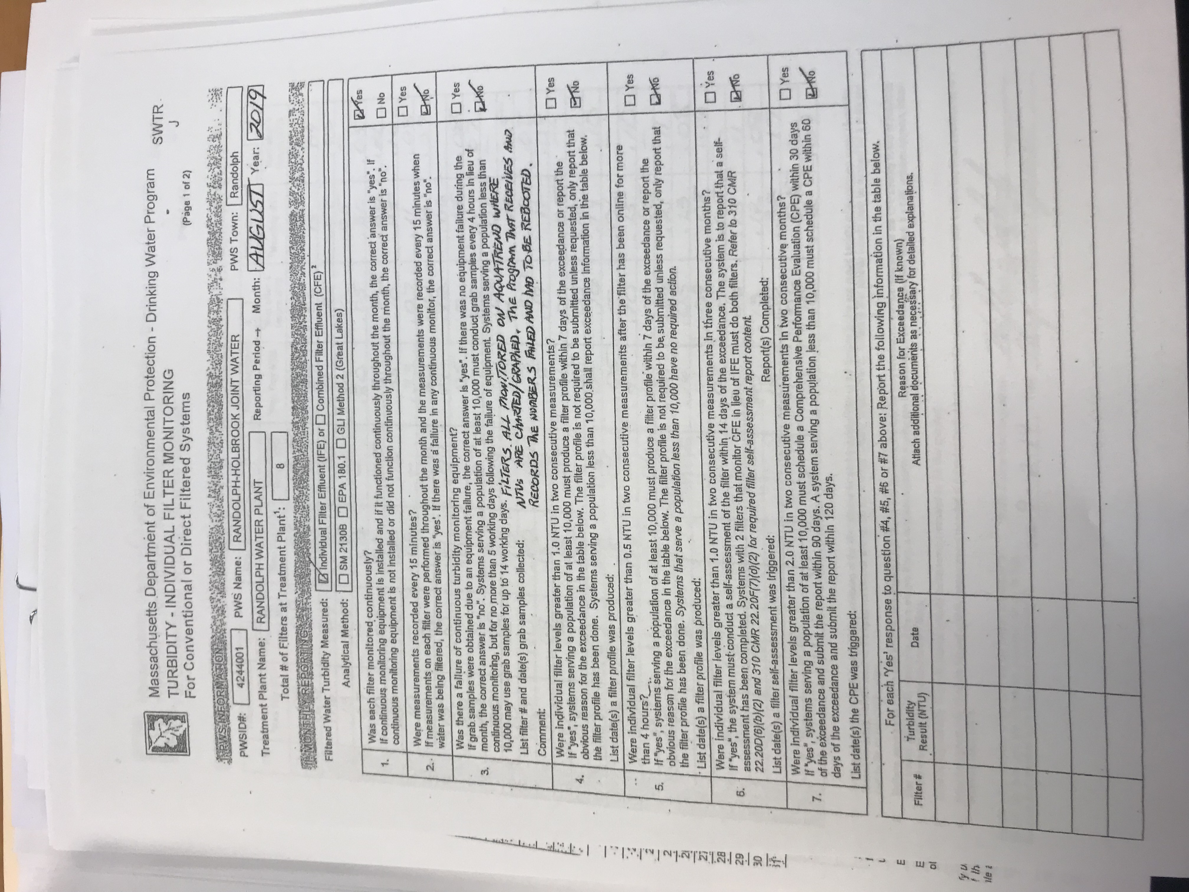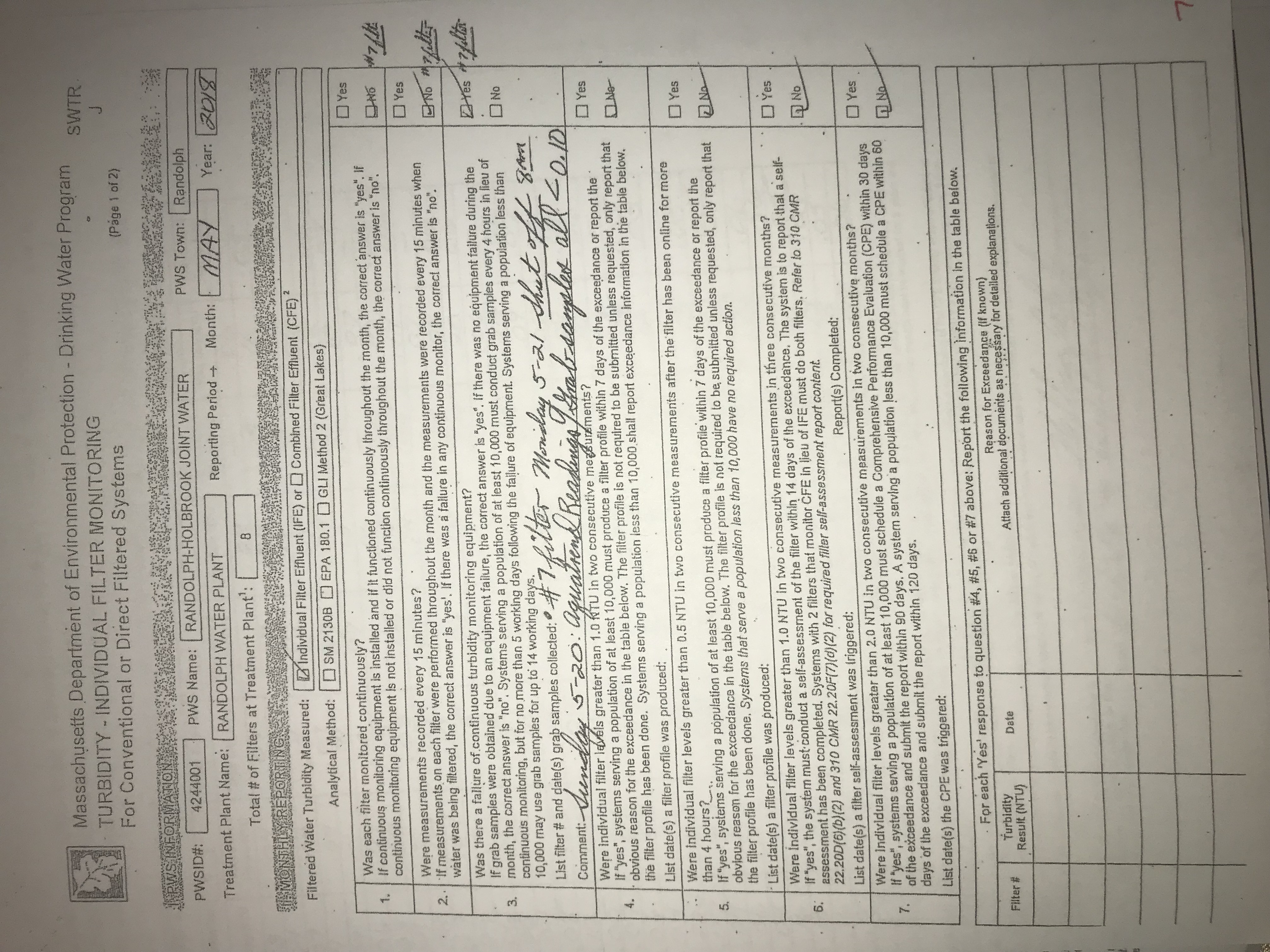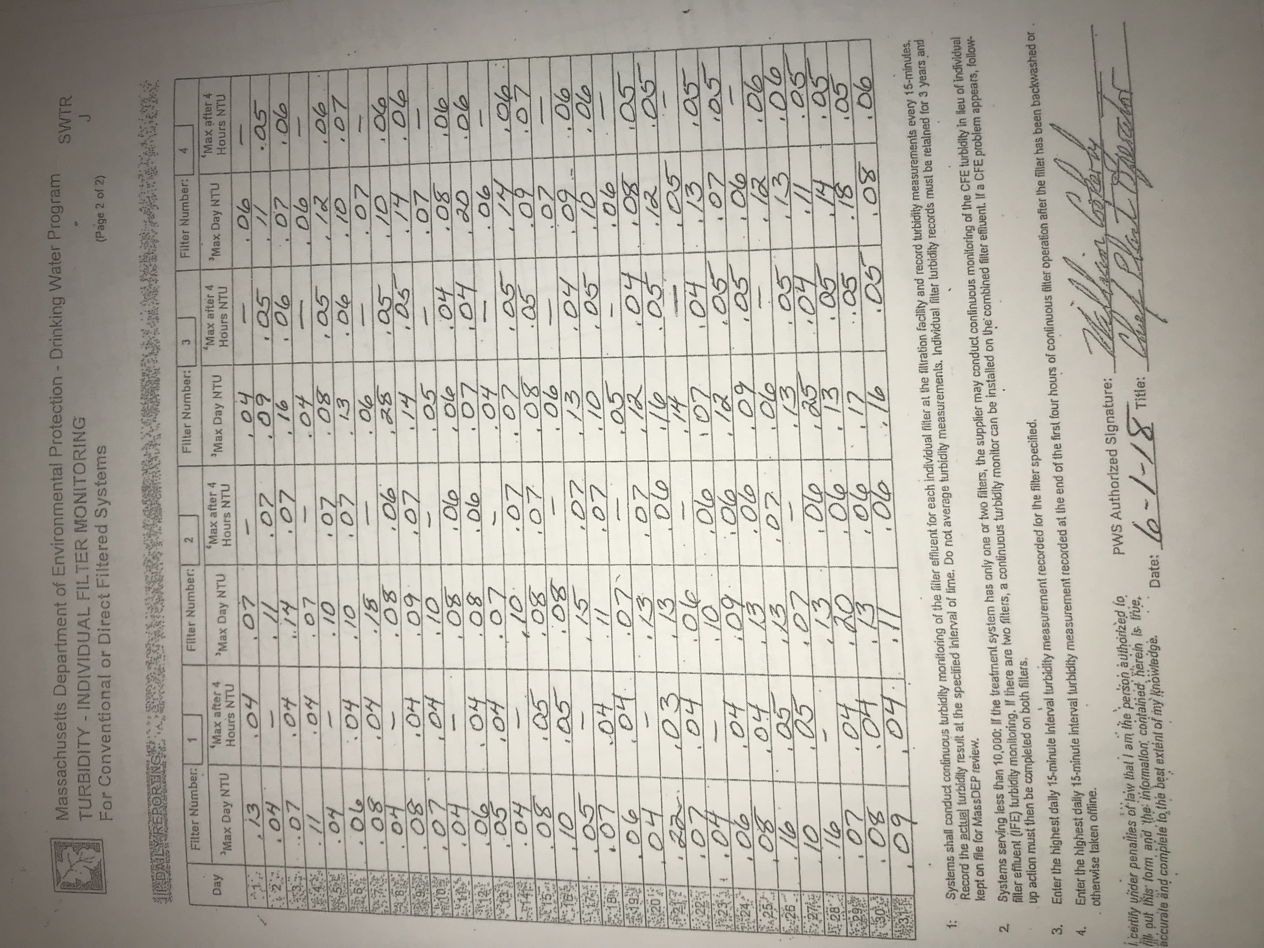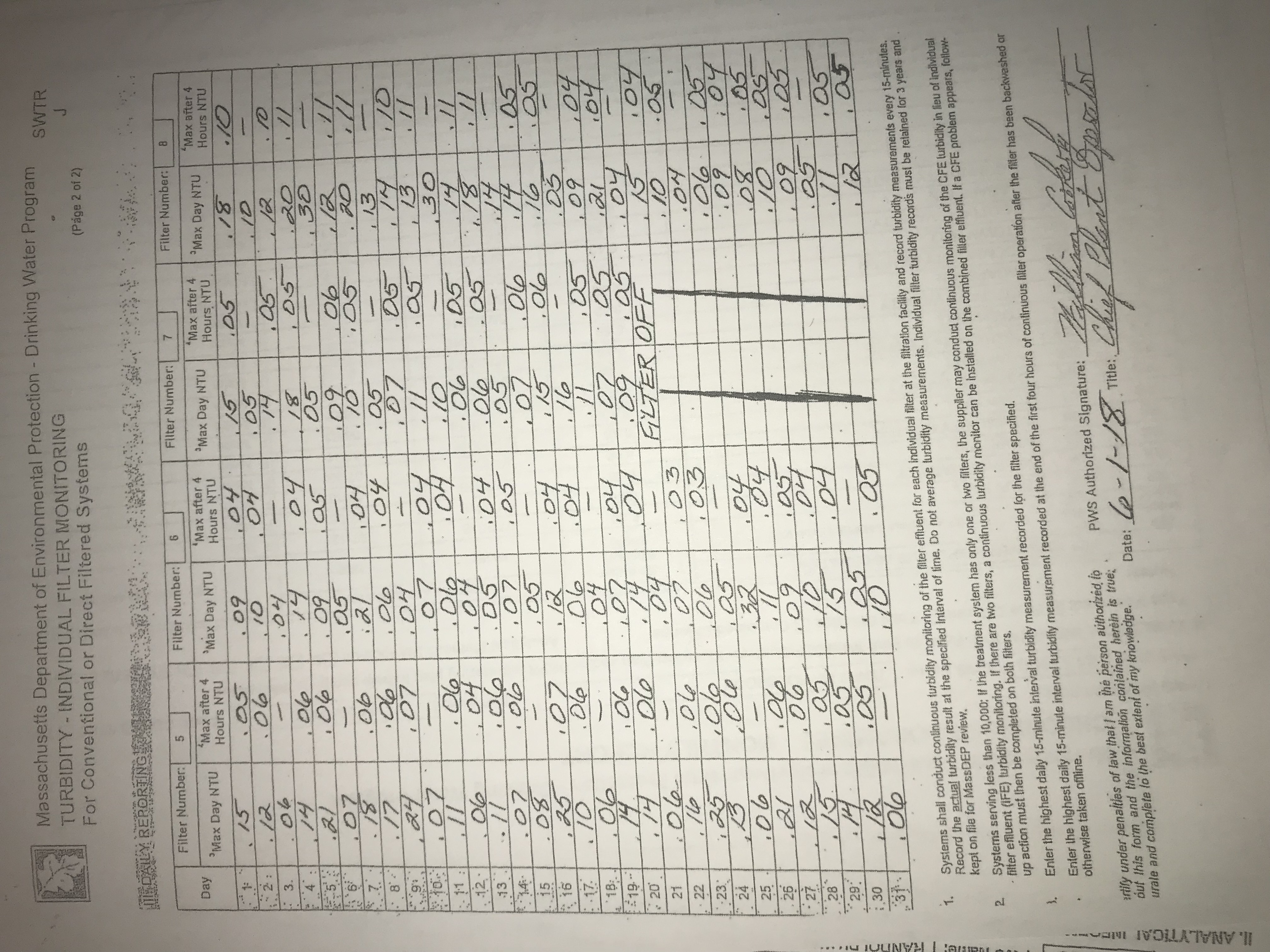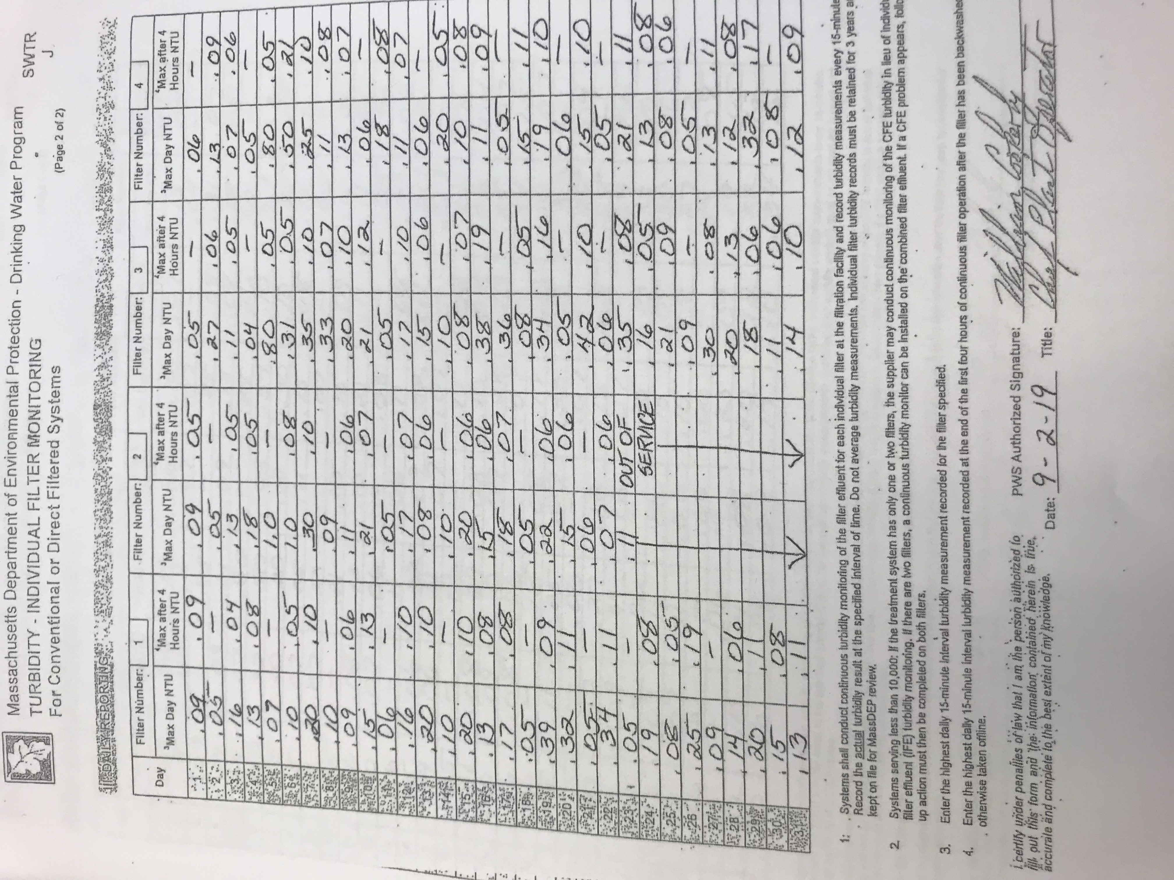 | Document 2130 | 9/2/2019 | Turbidity filter monitoring - details |
