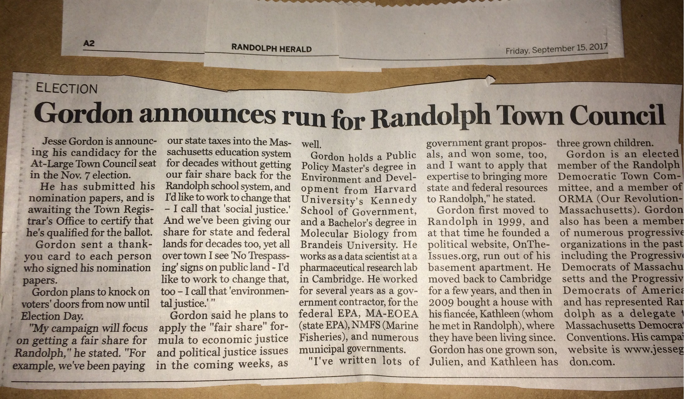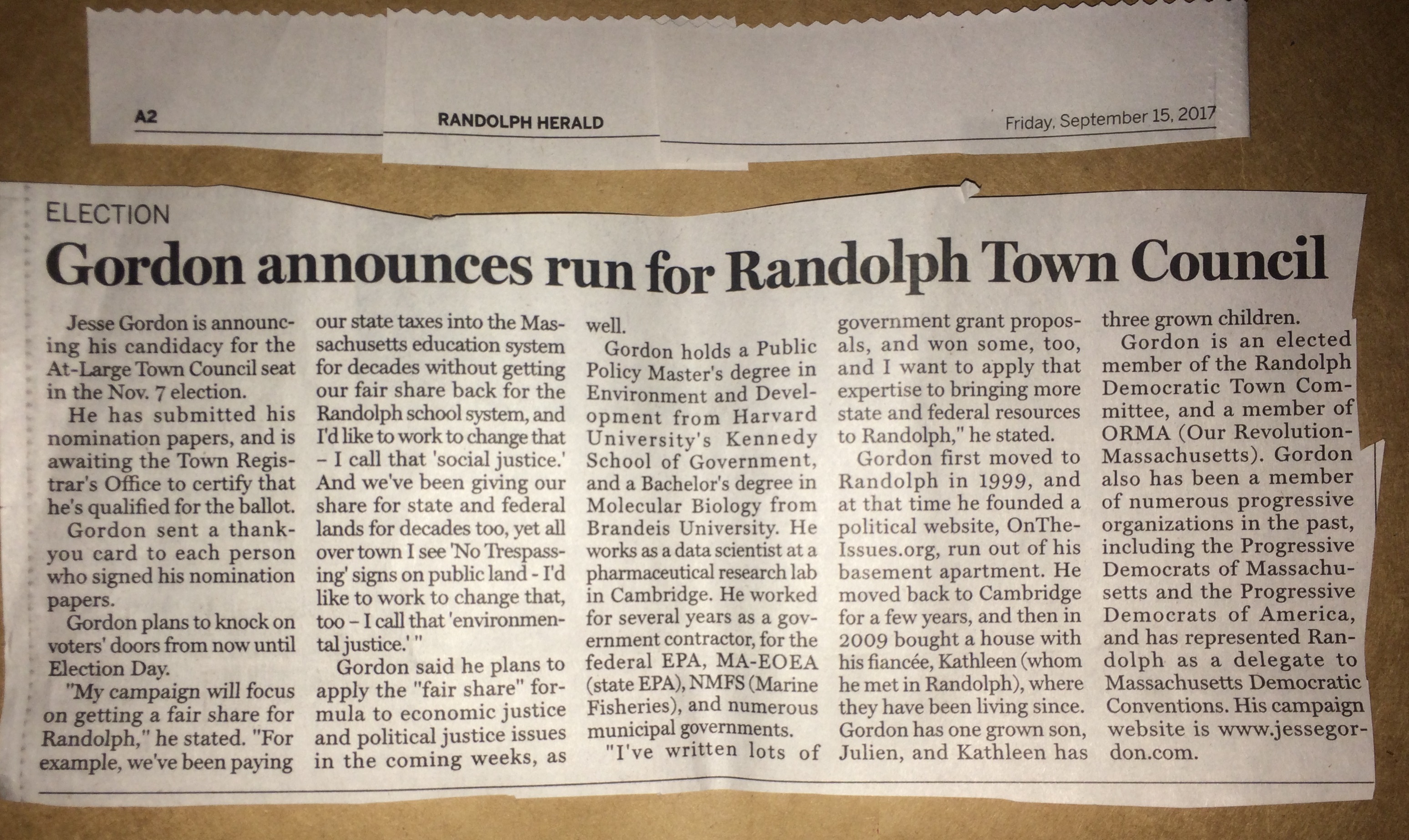 Jesse Gordon for Randolph Town Council >