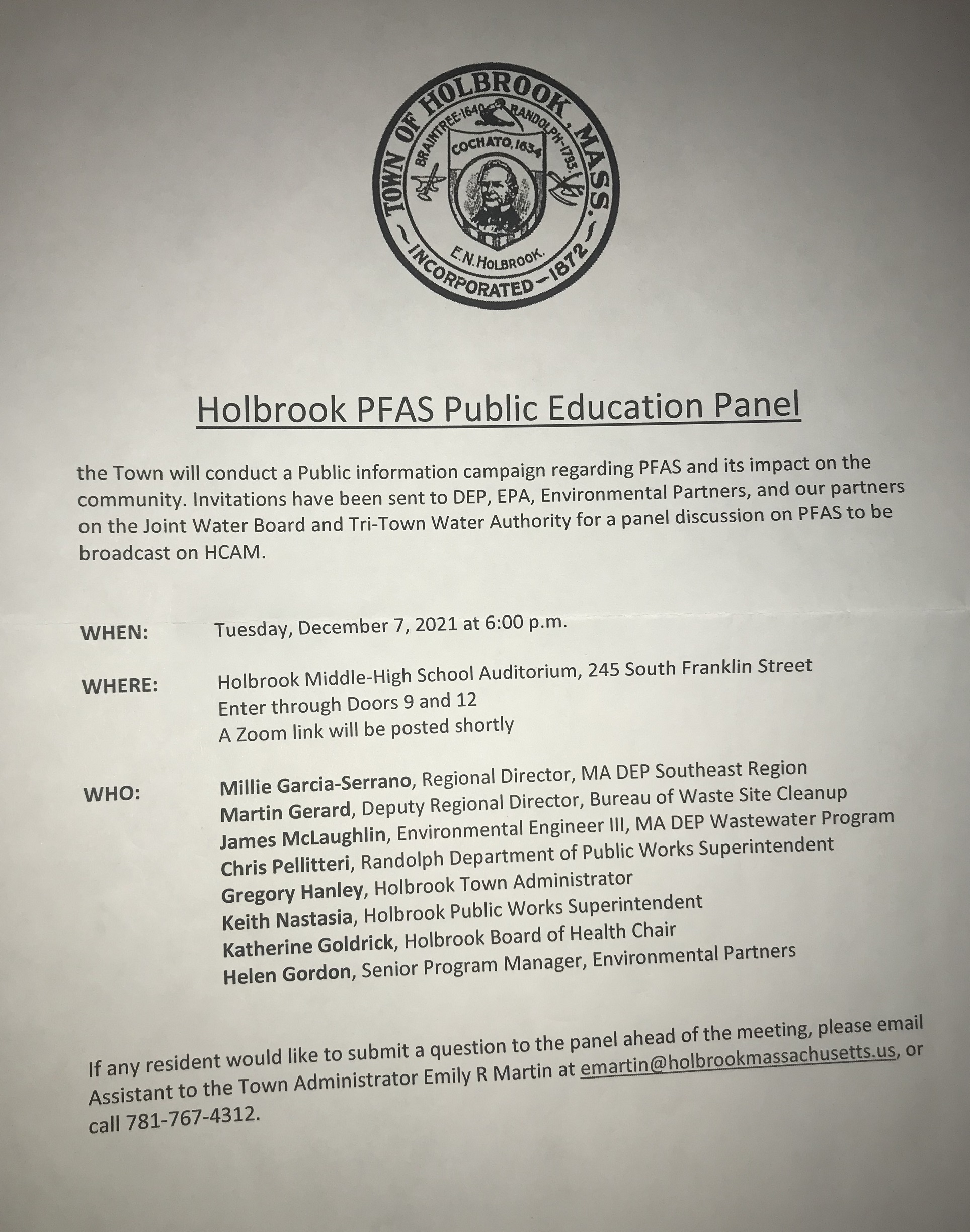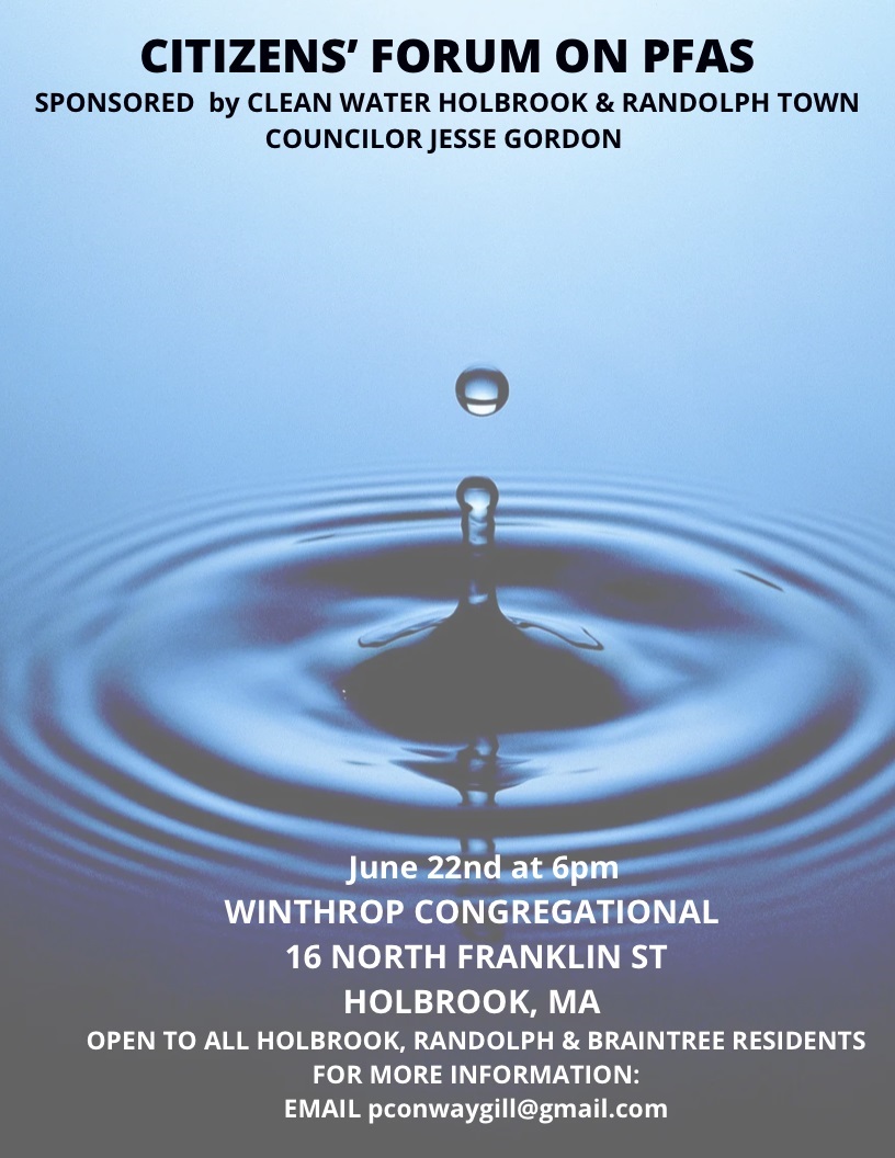 - PFAS Forum 2022: Wednesday June 22 at 6 PM, at Winthrop Congregational Church, 16 North Franklin St., Holbrook (next door to Town Hall) - INVITATION AND DETAILS BELOW