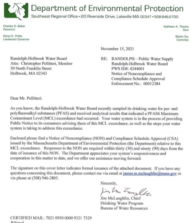 The complete story is that while the Randolph/Holbrook water plant can't do exactly what was done in Braintree, we CAN add PFAS filters that will reduce our PFAS content substantially -- ensuring that we stay below the 20 ppt state-designated health level.